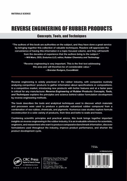 Reverse engineering is widely practiced in the rubber industry. Companies routinely analyze competitors' products to gather information about specifications or compositions. In a competitive market, introducing new products with better features and at a faster pace is critical for any manufacturer. Reverse Engineering of Rubber Products: Concepts, Tools, and Techniques explains the principles and science behind rubber formulation development by reverse engineering methods. The book describes the tools and analytical techniques used to discover which materials and processes were used to produce a particular vulcanized rubber compound from a combination of raw rubber, chemicals, and pigments.