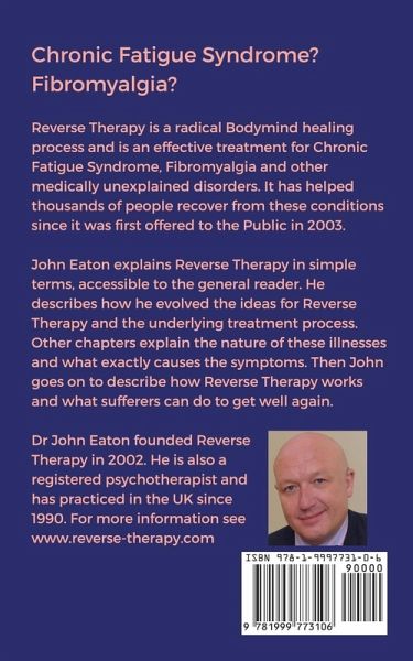 This is the new version of the best-selling 2005 Book M.E., Chronic Fatigue Syndrome and Fibromyalgia - The Reverse Therapy approach and replaces that book entirely. Contains new and up-to-date information on the Reverse Therapy approach as well as explanations for the conditions it treats. This conditions include: chronic fatigue syndrome, fibromyalgia, tension myositis, medically unexplained pain, irritable bowel syndrome (IBS), eczema, psoriasis and auto-immune disease. Reverse Therapy is a radical Bodymind healing process and is an effective treatment for Chronic Fatigue Syndrome, Fibromyalgia and other medically unexplained disorders. It has helped thousands of people recover from these disorders since it was first offered to the General Public in 2003. Dr. John Eaton explains Reverse Therapy in simple terms, accessible to the general reader. He describes how he evolved the ideas for Reverse Therapy and the underlying treatment process. Other chapters explain the nature of these illnesses and what exactly causes the symptoms. Then John goes on to describe how Reverse Therapy works and what sufferers can do to get well again. This may well be the first and last book anyone will need to buy in order to understand CFS and Fibromyalgia and find the way to their cure. Dr John Eaton founded Reverse Therapy in 2002. He is also a registered psychotherapist and has been practicing in the UK since 1990.