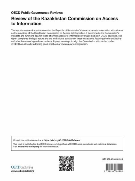 The report assesses the enforcement of the Republic of Kazakhstan's law on access to information with a focus on the practices of the Kazakhstan Commission on Access to Information. It benchmarks the Commission's mandate and functions against those of similar access-to-information oversight bodies in OECD countries.