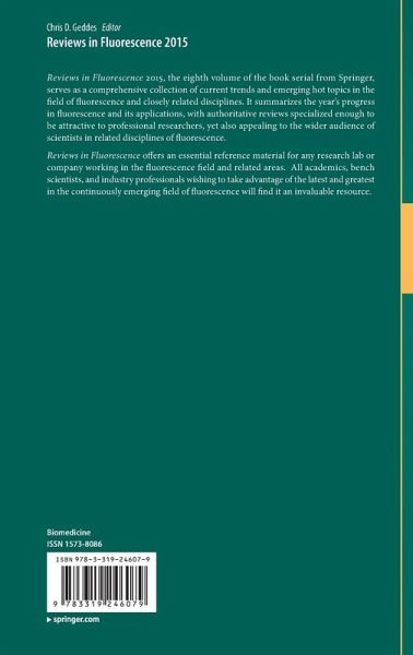 Reviews in Fluorescence 2015, the eighth volume of the book serial from Springer, serves as a comprehensive collection of current trends and emerging hot topics in the field of fluorescence and closely related disciplines. It summarizes the year's progress in fluorescence and its applications, with authoritative reviews specialized enough to be attractive to professional researchers, yet also appealing to the wider audience of scientists in related disciplines of fluorescence.