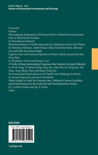 Physiological Adaptations of Stressed Fish to Polluted Environments: Role of Heat Shock Proteins.- Phytoremediation: A Novel Approach for Utilization of Iron-ore Wastes.- Fugitive Dust and Human Exposure to Heavy Metals Around the Red Dog Mine.- A Profile of Ring-hydroxylating Oxygenases that Degrade Aromatic Pollutants.- Environmental Implications of Oil Spills from Shipping Accidents.- Water Quality in South San Francisco Bay, California: Current Condition and Potential Issues for the South Bay Salt Pond Restoration Project.