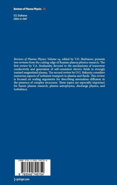 "Reviews of Plasma Physics Volume 24", edited by V.D. Shafranov, presents two reviews from the cutting-edge of Russian plasma physics research. The first review by V.A. Rozhansky devoted to the mechanisms of transverse conductivity and generation of self-consistent electric fields in strongly ionized magnetized plasma. The second review by O.G. Bakunin considers numerous aspects of turbulent transport in plasma and fluids. This review is focused on scaling arguments for describing anomalous diffusion in the presence of complex structures. These topics are especially important for fusion plasma…mehr