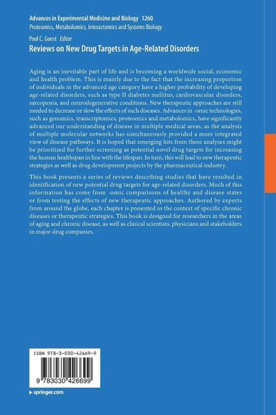 This book presents a series of reviews describing studies that have resulted in identification of new potential drug targets for age-related disorders. Much of this information has come from -omic comparisons of healthy and disease states or from testing the effects of new therapeutic approaches. Authored by experts from around the globe, each chapter is presented in the context of specific chronic diseases or therapeutic strategies. This book is designed for researchers in the areas of aging and chronic disease, as well as clinical scientists, physicians and stakeholders in major drug companies.