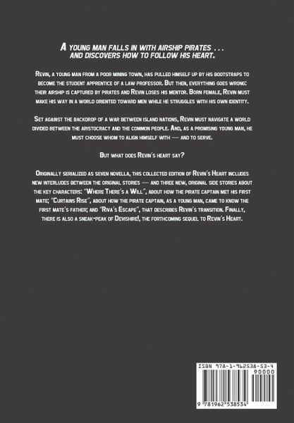 A young man falls in with airship pirates ... and discovers how to follow his heart. Revin, a young man from a poor mining town, has pulled himself up by his bootstraps to become the student apprentice of a law professor. But then, everything goes wrong: their airship is captured by pirates and Revin loses his mentor. Born female, Revin must make his way in a world oriented toward men while he struggles with his own identity. Set against the backdrop of a war between island nations, Revin must navigate a world divided between the aristocracy and the common people. And, as a promising young man, he must choose whom to align himself with - and to serve. But what does Revin's heart say?