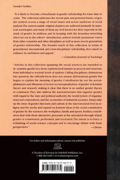 This comprehensive handbook summarizes the state of gender studies, by examining the crucial research of the past decade and by encouraging thinking about how the questions central to studying gender have themselves changed. The book is an important step towards constructing a new analytical framework approach for the social sciences, one that calls into question disciplinary boundaries. The contributors illustrate how the use of gender by scholars in various and overlapping fields of study has helped alter concepts and research designs