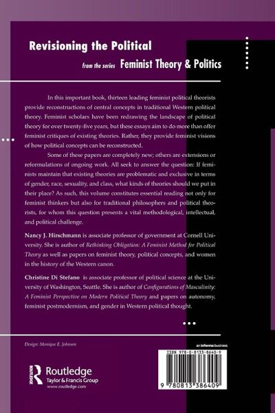 Feminist scholars have been remaking the landscape in political theory, and in this important book some of the most important feminist political theorists provide reconstructions of those concepts most central to the tradition of political philosophy. The goal is nothing less than the construction of a blueprint for a positive feminist theory.Many of these papers are completely new; others are extensions of important earlier work; two are reprints of classic papers. The result is a progress report on the continuing feminist project to re-envision traditional political theory. As such, it constitutes essential reading not only for feminist thinkers but also for traditional philosophers and political theorists, who will need to come to terms with these contemporary critiques and re-readings.