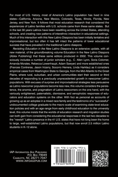 A volume in Education Policy in Practice: Critical Cultural Studies Series Editors Edmund T. Hamann, University of Nebraska-Lincoln and Rodney Hopson, George Mason University For most of US history, most of America's Latino population has lived in nine states-California, Arizona, New Mexico, Colorado, Texas, Illinois, Florida, New Jersey, and New York. It follows that most education research that considered the experiences of Latino families with US schools came from these same states. But in the last 30 years Latinos have been resettling across the US, attending schools, and creating new patterns of inter-ethnic interaction in educational settings. Much of this interaction with this New Latino Diaspora has been initially tentative and improvisational, but too often it has left intact the patterns of lower educational success that have prevailed in the traditional Latino diaspora. Revisiting Education in the New Latino Diaspora is an extensive update, with all new material, of the groundbreaking volume Education in the New Latino Diaspora (Ablex Publishing) that these same editors produced in 2002. This volume consciously includes a number of junior scholars (e.g., C. Allen Lynn, Soria Colomer, Amanda Morales, Rebecca Lowenhaupt, Adam Sawyer) and more established ones (Frances Contreras, Jason Irizarry, Socorro Herrera, Linda Harklau) as it considers empirical cases from Washington State to Georgia, from the Mid-Atlantic to the Great Plains, where rural, suburban, and urban communities start their second or third decades of responding to a previously unprecedented growth in newcomer Latino populations. With excuses of surprise and improvisational strategies less persuasive as Latino newcomer populations become less new, this volume considers the persistence, the anomie, and pragmatism of Latino newcomers on the one hand, with the variously enlightened, paternalistic, dismissive, and xenophobic responses of educators and education systems on the other. With foci as personal as accounts of growing up as an adoptee in a mixed race family and the testimonio of a 'successful' undocumented college graduate to the macro scale of examining state-level education policies and with an age range from early childhood education to the university level, this volume insists that the worlds of education research and migration studies can both gain from considering the educational responses in the last two decades to the 'newish' Latino presence in the 41 U.S. states that have not long been the home to large, well-established Latino populations, but that now enroll 2.5 million Latino students in K-12 alone.