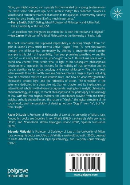 The remainder of the volume is dedicated to a deep dive into Searle's essay and its implications by international scholars with diverse backgrounds ranging from analytic philosophy, phenomenology, and logic, to moral philosophy and the philosophy and sociology of law. With thirteen original chapters, the contributors provide fresh and timely insights on hotly debated issues: the nature of "Ought"; the logical structure of the social world; and the possibility of deriving not only "Ought" from "Is", but "Is" from "Ought".