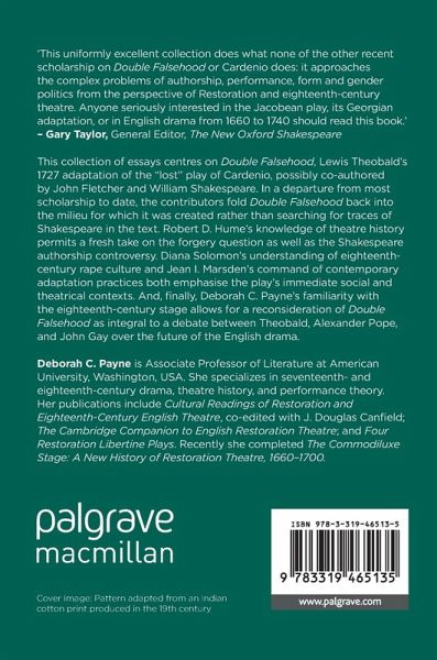 This collection of essays centres on Double Falsehood, Lewis Theobald's 1727 adaptation of the "lost" play of Cardenio, possibly co-authored by John Fletcher and William Shakespeare. In a departure from most scholarship to date, the contributors fold Double Falsehood back into the milieu for which it was created rather than searching for traces of Shakespeare in the text. Robert D. Hume's knowledge of theatre history permits a fresh take on the forgery question as well as the Shakespeare authorship controversy. Diana Solomon's understanding of eighteenth-century rape culture and Jean I. Marsden's command of contemporary adaptation practices both emphasise the play's immediate social and theatrical contexts. And, finally, Deborah C. Payne's familiarity with the eighteenth-century stage allows for a reconsideration of Double Falsehood as integral to a debate between Theobald, Alexander Pope, and John Gay over the future of the English drama.