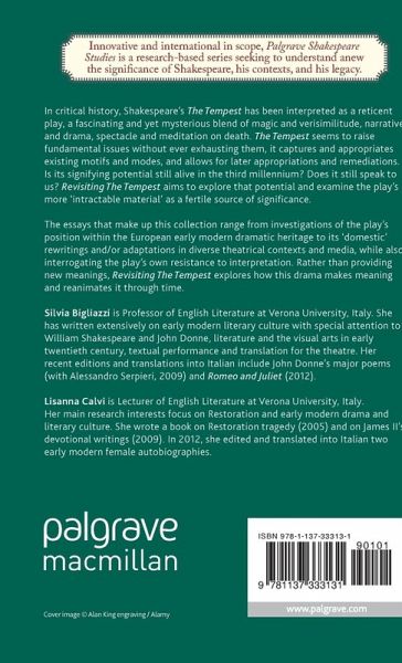 Revisiting The Tempest offers a lively reconsideration of how The Tempest encourages interpretation and creative appropriation. It includes a wide range of essays on theoretical and practical criticism focusing on the play's original dramatic context, on its signifying processes and its present-time screen remediation.