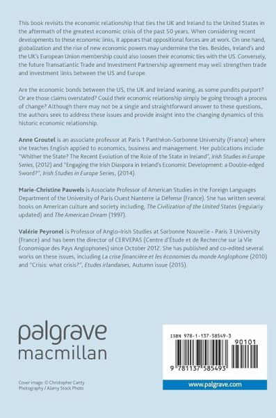 Are the economic bonds between the US, the UK and Ireland waning, assome pundits purport? Or are those claims overstated? Could their economicrelationship simply be going through a process of change? Although there maynot be a single and straightforward answer to these questions, the authors seekto address these issues and provide insight intothe changing dynamics of thishistoric economic relationship.