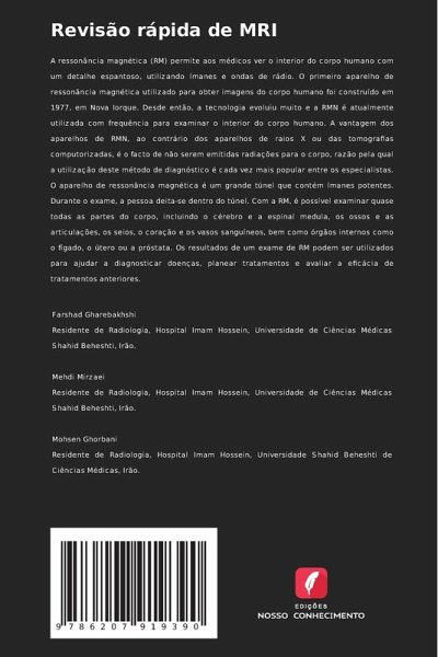 A ressonância magnética (RM) permite aos médicos ver o interior do corpo humano com um detalhe espantoso, utilizando ímanes e ondas de rádio. O primeiro aparelho de ressonância magnética utilizado para obter imagens do corpo humano foi construído em 1977, em Nova Iorque. Desde então, a tecnologia evoluiu muito e a RMN é atualmente utilizada com frequência para examinar o interior do corpo humano. A vantagem dos aparelhos de RMN, ao contrário dos aparelhos de raios X ou das tomografias computorizadas, é o facto de não serem emitidas radiações para o corpo, razão pela qual a utilização deste método de diagnóstico é cada vez mais popular entre os especialistas. O aparelho de ressonância magnética é um grande túnel que contém ímanes potentes. Durante o exame, a pessoa deita-se dentro do túnel. Com a RM, é possível examinar quase todas as partes do corpo, incluindo o cérebro e a espinal medula, os ossos e as articulações, os seios, o coração e os vasos sanguíneos, bem como órgãos internos como o fígado, o útero ou a próstata. Os resultados de um exame de RM podem ser utilizados para ajudar a diagnosticar doenças, planear tratamentos e avaliar a eficácia de tratamentos anteriores.