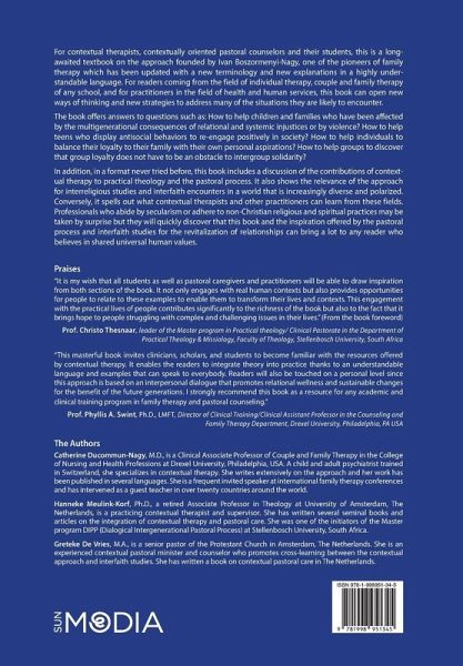 This book about revitalizing family and social relationships in an increasingly diverse and polarized world should become a resource for a vast array of professionals in the fields of mental heath, social and community services. It will also serve as a textbook on contextual therapy and its applications that fills a gap in the literature on this approach. It will present it in a highly understandable language, using a new terminology. Hence this book will meet the needs of many contextual therapists and contextually inspired pastoral counselors at any level of expertise. For other professionals, this book can open new ways of thinking and new strategies to address many of the situations they are likely to encounter. In addition, in a format never tried before, this book includes a section dedicated to contributions of contextual therapy to practical theology, the pastoral process, and interfaith studies. It will also present the contributions of these studies to the facilitation of interfaith encounters that can serve as a model for any professional working in a multicultural environment.