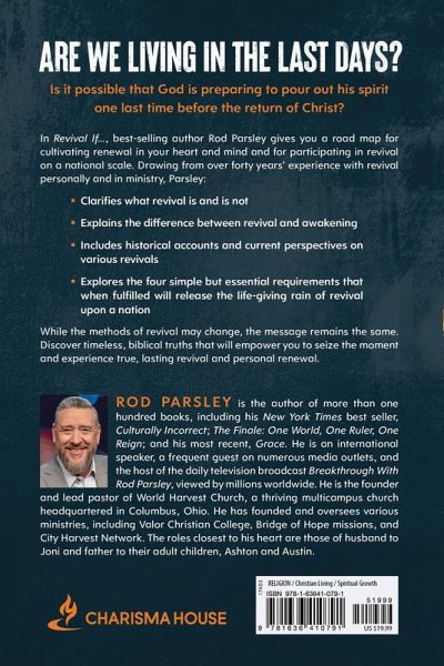 "Could it be that God is giving us one last opportunity to allow His Spirit to be poured out upon the earth before the return of Jesus? This book will stir you to fan the flames of revival in your own heart so you can partner with the Holy Spirit and fellow believers to see a sweeping move of God transform America and the world. Are we living in the last days? Is it possible that God is getting ready to pour out His Spirit on the earth one last time before Jesus returns? In Revival...IF, best-selling author Rod Parsley gives readers a road map for cultivating renewal in their own hearts and…mehr