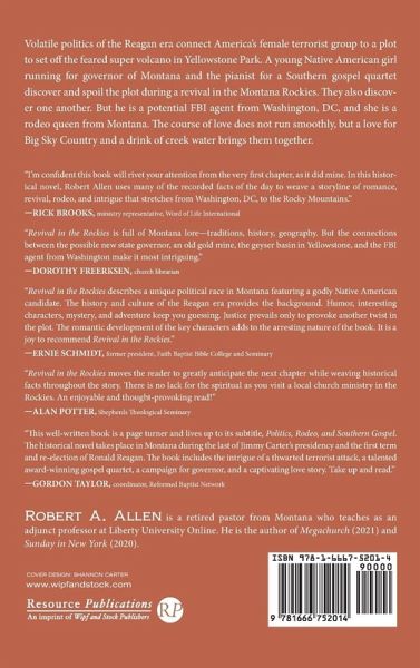 Volatile politics of the Reagan era connect America's female terrorist group to a plot to set off the feared super volcano in Yellowstone Park. A young Native American girl running for governor of Montana and the pianist for a Southern gospel quartet discover and spoil the plot during a revival in the Montana Rockies. They also discover one another. But he is a potential FBI agent from Washington, DC, and she is a rodeo queen from Montana. The course of love does not run smoothly, but a love for Big Sky Country and a drink of creek water brings them together.