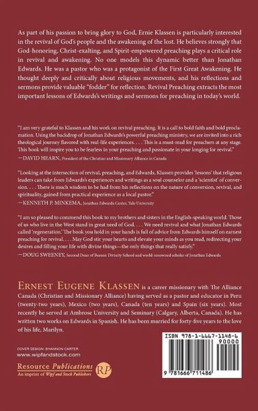As part of his passion to bring glory to God, Ernie Klassen is particularly interested in the revival of God's people and the awakening of the lost. He believes strongly that God-honoring, Christ-exalting, and Spirit-empowered preaching plays a critical role in revival and awakening. No one models this dynamic better than Jonathan Edwards. He was a pastor who was a protagonist of the First Great Awakening. He thought deeply and critically about religious movements, and his reflections and sermons provide valuable "fodder" for reflection. Revival Preaching extracts the most important lessons of Edwards's writings and sermons for preaching in today's world.