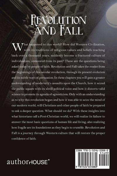 What happened to this world? How did Western Civilization, with its traditions of religious values and beliefs reaching back over a thousand years, suddenly become a fractured culture of individualism, unmoored from its past? These are the questions being asked today by people of faith. Revolution and Fall takes the reader from the beginnings of this secular revolution, through its present evolution and its subtle ways of persuasion. In these chapters you will gain a greater understanding of modernity's assaults upon the Church, how it seized the public square with its shrill political voice and how it distorts valid science to promote its agenda of agnosticism. Only with an understanding as to why this revolution began and how it was able to seize the mind of our modern world, will Christians and other people of faith be prepared to ask a deeper question. What should we do? With these insights into what historians call a Post-Christian world, we will realize its failure to answer the most basic questions of human life and living, also realizing how fragile are its foundations as they begin to crumble. Revolution and Fall is a journey through Western culture that will restore the proper confidence of faith.