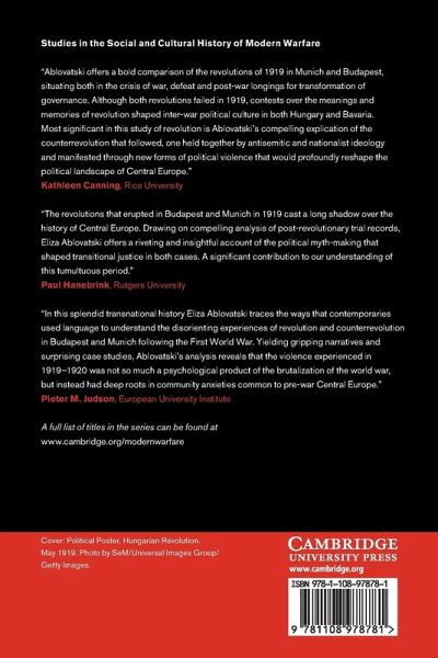Eliza Ablovatksi offers an innovative comparative and transnational study of revolution and counterrevolution in Central Europe in 1919. She employs the experiences of Munich and Budapest to analyze how revolutionary scripts and narratives, framed by antisemitism and gender stereotypes, shaped political events and violence.