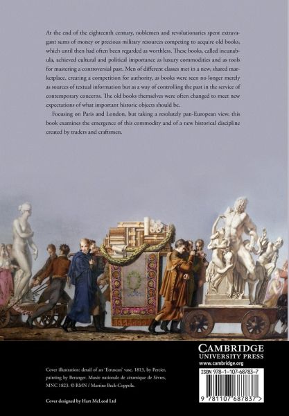 At the end of the eighteenth century, noblemen and revolutionaries spent extravagant sums of money or precious military resources competing to acquire old books, which until then had often been regarded as worthless. These books, called incunabula, achieved cultural and political importance as luxury commodities and as tools for mastering a controversial past. Men of different classes met in a new, shared marketplace, creating a competition for social authority, as books were no longer seen merely as sources of textual information but as a way of controlling the past in the service of contemporary concerns. The old books themselves were often changed to meet new expectations of what important historic objects should be. Focusing on Paris and London, but taking a resolutely pan-European view, this book examines the emergence of this commodity and of a new historical discipline created by traders and craftsmen.