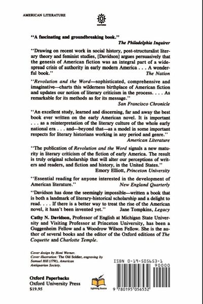 Offering a unique perspective on the origins of American fiction, Cathy N. Davidson focuses not only on the early novels themselves but also on the people who produced, sold, and read them. She demonstrates how, in the aftermath of the American Revolution, the novel found a special place among some of the least privileged citizens of the new republic. Though now mostly forgotten, these early American novels enabled those who bought and read them--especially women and the lower classes--to move into the higher levels of literacy required by a democracy. Combining rigorous historical methods with contemporary critical theory, Davidson brilliantly reconstructs the complex interplay of politics, ideology, economics, and other social forces that governed the writing, publishing, distribution, and comprehension of these early novels. She assesses the precarious business of the printer, the hardships endured by the traveling book peddler, the shortcomings of early American schools, and the lost lives of such women as Tabitha Tenney and diarist Patty Rogers. By exploring how Americans lived during the Constitutional era, Davidson presents the genesis of American literature in its fullest possible context.