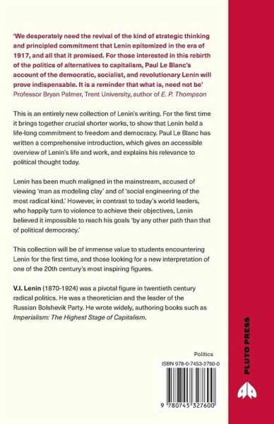 This is an entirely new collection of Lenin's writing. For the first time it brings together crucial shorter works, to show that Lenin held a life-long commitment to freedom and democracy. Le Blanc has written a comprehensive introduction, which gives an accessible overview of Lenin's life and work, and explains his relevance to political thought today. Lenin has been much maligned in the mainstream, accused of viewing 'man as modeling clay' and of 'social engineering of the most radical kind.' However, in contrast to today's world leaders, who happily turn to violence to achieve their objectives, Lenin believed it impossible to reach his goals 'by any other path than that of political democracy.' This collection will be of immense value to students encountering Lenin for the first time, and those looking for a new interpretation of one of the 20th century's most inspiring figures.