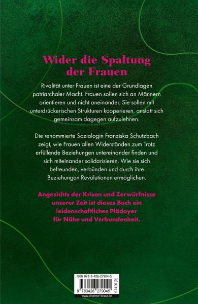 Die Soziologin und Sachbuchautorin Franziska Schutzbach zeigt anhand zahlreicher fesselnder Beispiele aus Vergangenheit und Gegenwart, wie Frauen trotz Spaltung und Differenz durch ihre Beziehungen Revolutionen ermöglicht haben. Wie sie patriarchale Strukturen in Alltag und Politik lockerten, weil sie sich verbündeten und befreundeten. Sie beschreibt, was möglich ist, wenn Frauen sich an anderen Frauen orientieren.