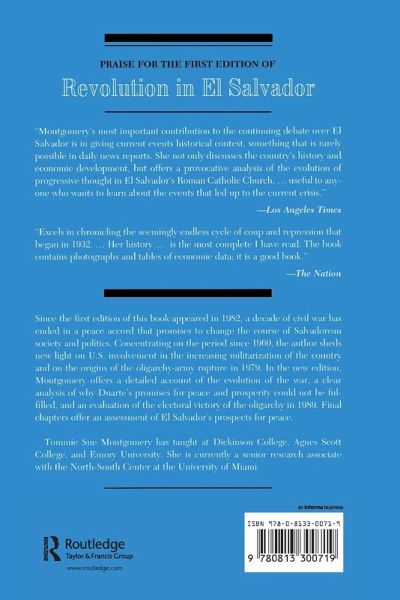 Tommie Sue Montgomery has been traveling, occasionally living and teaching, and doing research in Latin America since 1976. With a M.A. from Vanderbilt University and a Ph.D. from New York University, she has spent over 40 years conducting research in El Salvador and is the author of three books and numerous articles on the country. She has also lived in Mexico, Belize, Nicaragua, and Argentina. Dr. Montgomery has received three Fulbright grants and, in 2013, was honoured by her alma mater, Wesleyan College in Georgia, for "distinguished achievement in a profession."