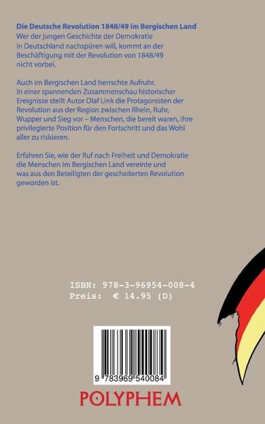Die Deutsche Revolution 1848/49 im Bergischen Land Wer der jungen Geschichte der Demokratie in Deutschland nachspüren will, kommt an der Befassung mit der Revolution von 1848/1849 nicht vorbei. Auch im Bergischen Land herrschte Aufruhr. In einer spannenden Zusammenschau historischer Ereignisse stellt Autor Olaf Link die Protagonisten der Revolution aus der Region zwischen Rhein, Ruhr, Wupper und Sieg vor - Menschen, die bereit waren, ihre privilegierte Position für den Fortschritt und das Wohl aller zu riskieren. Erfahren Sie, wie der Ruf nach Freiheit und Demokratie die Menschen im Bergischen Land vereinte und was aus den Beteiligten der gescheiterten Revolution geworden ist.