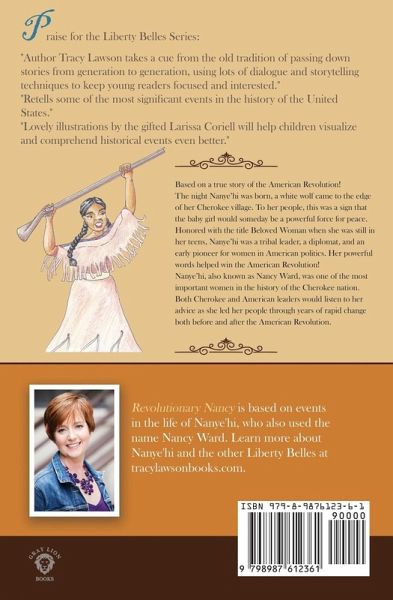 Based on a true story of the American Revolution! The night Nanye'hi was born, a white wolf came to the edge of her Cherokee village. To her people, this was a sign that the baby girl would someday be a powerful force for peace. Honored with the title Beloved Woman when she was still in her teens, Nanye'hi was a tribal leader, a diplomat, and an early pioneer for women in American politics. Her powerful words helped win the American Revolution! Nanye'hi, also known as Nancy Ward, was one of the most important women in the history of the Cherokee nation. Both Cherokee and American leaders would listen to her advice as she led her people through years of rapid change both before and after the American Revolution. Revolutionary Nancy is the fourth book in the Liberty Belles series about the unsung women heroes of the American Revolution.