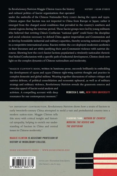 In Revolutionary Nativism Maggie Clinton traces the history and cultural politics of fascist organizations that operated under the umbrella of the Chinese Nationalist Party (GMD) during the 1920s and 1930s. Clinton argues that fascism was not imported to China from Europe or Japan; rather it emerged from the charged social conditions that prevailed in the country's southern and coastal regions during the interwar period. These fascist groups were led by young militants who believed that reviving China's Confucian "national spirit" could foster the discipline and social cohesion necessary to defend China against imperialism and Communism and to develop formidable industrial and military capacities, thereby securing national strength in a competitive international arena. Fascists within the GMD deployed modernist aesthetics in their literature and art while justifying their anti-Communist violence with nativist discourse. Showing how the GMD's fascist factions popularized a virulently nationalist rhetoric that linked Confucianism with a specific path of industrial development, Clinton sheds new light on the complex dynamics of Chinese nationalism and modernity.