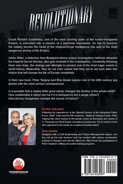 Count Richárd Eszterházy, one of the most cunning spies of the Austro-Hungarian Empire, is entrusted with a mission of a particular importance: he has to discover the military secrets the Head of the Imperial-Royal Intelligence has sold to the most dangerous enemy of the Empire. István Ritter, a detective from Budapest whose unique investigation methods attracted the Imperial Secret Service, also gets involved in the investigation. Constantly following fresh new clues, the strange pair attempts to prevent one of the most tragic events in world history. Meanwhile, they do not even realize that they are to set such tides into motion that will change the life of Europe completely. In their new book, Peter Tarjanyi and Rita Dosek expose one of the 20th century spy games with the most serious consequences. Is it possible that a mailed letter gone astray changes the destiny of the whole world? How undefended a nation can be if it is betrayed by but a single citizen? How did two Hungarians reshape the course of history?