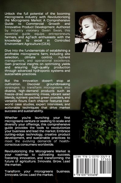 Revolutionizing the Microgreens Market: A Comprehensive Guide to Commercial Growth and Innovative Product Development is the definitive resource for entrepreneurs, farmers, AgTech professionals, and anyone passionate about advancing the microgreens industry. Authored by Gwen Swan, a leading expert in Controlled Environment Agriculture (CEA) and a visionary in sustainable farming practices, this book offers an unparalleled deep dive into the intricacies of commercial microgreens cultivation and the innovative product opportunities that can transform the market. In this comprehensive guide, readers will embark on a journey through every aspect of microgreens production, from the foundational principles to cutting-edge techniques. The book begins with an exploration of microgreens themselves-defining what they are, their nutritional benefits, and the growing consumer demand driving the market. Gwen meticulously outlines the essentials of CEA, providing detailed insights into various systems such as hydroponics, aeroponics, and aquaponics, and explaining how these technologies enhance yield, quality, and sustainability in microgreens farming. Setting up a commercial microgreens farm can be daunting, but this book breaks down the process into manageable steps. From site selection and infrastructure design to seed selection and preparation, Gwen provides practical advice and real-world examples to ensure readers can establish and scale their operations successfully. Operational excellence is emphasized through chapters on climate control, lighting strategies, nutrient management, and integrated pest management, ensuring that every aspect of cultivation is optimized for maximum productivity and quality. But the true innovation lies beyond cultivation. Revolutionizing the Microgreens Market delves into groundbreaking product development strategies that elevate microgreens from fresh produce to versatile, high-value products. Readers will discover how to create freeze-dried seasoning mixes, vibrant salad blends, nutrient-packed green powders, and specialized flours. Each product innovation is supported by detailed methodologies, case studies, and market analysis, showcasing how these products can meet diverse consumer needs and open new revenue streams. Marketing and branding are pivotal to success in a competitive market, and this book provides comprehensive strategies to build a strong brand identity, leverage digital and traditional marketing channels, and engage with consumers effectively. Gwen also explores future trends and sustainability practices, ensuring that readers are well-equipped to navigate the evolving landscape of microgreens agriculture. Whether you are launching your first microgreens venture or seeking to scale and diversify your offerings, Revolutionizing the Microgreens Market equips you with the knowledge, tools, and inspiration to lead the industry. Embrace the future of agriculture with sustainable practices, innovative technologies, and creative product developments that cater to the growing demands of health-conscious and environmentally aware consumers worldwide. Transform your microgreens business. Innovate. Grow. Lead the market.