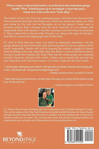 When a corpse is discovered under a car at the local auto restoration garage, Sophie "Phee" Kimball gears up to investigate a crime that puts a whole new twist on the term "body shop" . . . The seniors of Sun City West are celebrating again, this time over the news that Wayne from the pinochle club finally has a chance to restore his classic car. Phee goes along for the ride, but her thoughts are on her agency's latest case-a priceless artifact that's missing from the local museum. It's an antique doll supposedly filled with treasure-but also carrying a curse for whoever possesses it. Then a dead body is found under Wayne's car, along with signs of foul play, and Phee is coaxed into helping get him off the hook. It's clear to Phee that the victim was killed by sabotaged machinery, but the garage attracts so much foot traffic that narrowing down a list of suspects will be nearly impossible. Harder still will be keeping her mother's gaggle of friends from meddling in the case, especially after they throw a wrench into the works by trying to locate the missing doll. Soon Phee and the whole group are careening toward a head-on collision with a thief, a killer, and a cursed doll, and she can only hope they don't drive her insane-or worse-make her the next victim . . . Praise for the Books of J. C. Eaton: "Fun characters, a touch of humor, and a great mystery, the perfect combination for a cozy." -Lena Gregory, author of the Bay Island Psychic Mysteries on Ditched 4 Murder "So cleverly written, you won't guess the perpetrators until the very end." -Mary Marks, award-winning author of the Quilting Mystery Series on Booked 4 Murder "A thoroughly entertaining series debut, with enjoyable yet realistic characters and enough plot twists-and dead ends-to appeal from beginning to end." -Booklist, starred review, on Booked 4 Murder "Enjoy this laugh-out-loud funny mystery that will make you scream for the authors to get busy on the next one." -Suspense Magazine on Molded 4 Murder