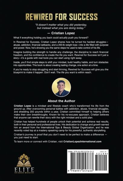 Imagine having the power to overcome any obstacle or challenge in your life.A power that could drastically improve your health, your finances, your relationships...your life. What if you already had that power, but you didn't know how to use it? Cristian Lopez takes you on a journey to tap into your own power and outlines how you can begin using it TODAY in Rewired for Success: How to Transform Your Challenges into Wealth and Wins. Part autobiography, part guidebook, Cristian shares the steps he took to transform his mind to overcome discrimination, abuse, addiction, financial distress, and ultimately how he lost 200lbs in a year...and kept it off! If you've found yourself struggling to create dramatic change in your life, Rewired for Success will provide you the small and easy steps you need to win NOW.