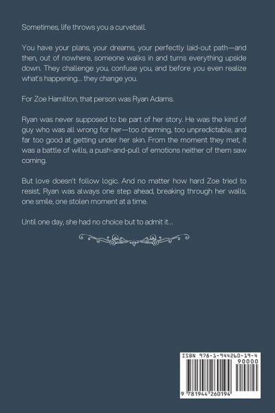 Sometimes, life throws you a curveball. You have your plans, your dreams, your perfectly laid-out path-and then, out of nowhere, someone walks in and turns everything upside down. They challenge you, confuse you, and before you even realize what's happening... they change you. For Zoe Hamilton, that person was Ryan Adams. Ryan was never supposed to be part of her story. He was the kind of guy who was all wrong for her-too charming, too unpredictable, and far too good at getting under her skin. From the moment they met, it was a battle of wills, a push-and-pull of emotions neither of them saw coming. But love doesn't follow logic. And no matter how hard Zoe tried to resist, Ryan was always one step ahead, breaking through her walls, one smile, one stolen moment at a time. Until one day, she had no choice but to admit it... She was falling. And there was no going back. A heart-stirring, emotional romance about love, fate, and the undeniable pull between two souls meant to find each other. Perfect for fans of Colleen Hoover and Emily Henry-get ready to fall head over heels.