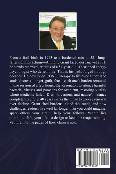 Anthony Grant, born frail in 1943, faced asthma and collapse by 52-lungs weak, hips in chronic pain, a burden to all. Yet at 81, this seasoned energy psychologist radiates vitality-a healing journey to healthy aging with arteries of a 54-year-old. In Rewriting Life - The New Science of Life and Longevity, he blends energy healing and mind-body wisdom for self-help triumph. From easing thousands' emotional health-anger, guilt, stress relief-to restoring body renewal where medicine has failed, Grant offers a path to longevity and life balance. Stress can sour us, but self-healing and personal growth await. Over the decades, he crafted a design-diet shedding two stone, movement reviving vitality, tools lifting pain relief and mental clarity. Clients find lives transformed: a man's hip soothed, a woman eating freely, another spared at 90. At 81, his heart beats steady at 58-proof of wellness and emotional wellness. This isn't just his story-it's your guide. Live well, ease others' loads, embrace mind-body renewal with a master of emotional health. No jargon, just clear steps to healing journey and longevity. For anyone seeking self-help that works-young or old-this delivers hope, stress relief, and healthy aging. Turn the page, claim life balance and vitality-join Grant's victory over time.