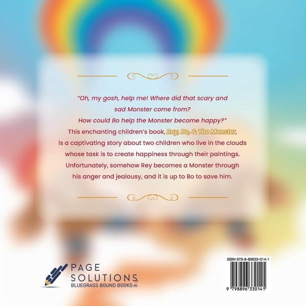 "Oh, my gosh, help me! Where did that scary and sad Monster come from? How could Bo help it become happy?" This enchanting children's book, Rey, Bo, & The Monster, is a captivating story about two children who live in the clouds whose task is to create happiness through their paintings. Unfortunately, somehow Rey becomes a Monster through his anger and jealousy, and it is up to Bo to save him.