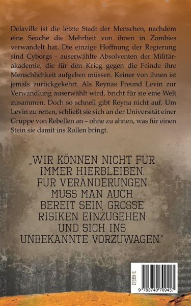 Menschlichkeit kostet. Anschließend werden sie ausgeschickt, um gegen die Zombies zu kämpfen und damit die…mehrWir schreiben das Jahr 2075. Eine Pandemie hat den Großteil der Menschheit in Zombies verwandelt. Auch der Klimawandel hat der Welt ganz schon zugesetzt. Jedes Jahr werden 11 Absolventen der Militärakademie in Cyborgs umgewandelt - eine grausame Prozedur, die sie alle Erinnerungen und ihre Menschlichkeit kostet. Anschließend werden sie ausgeschickt, um gegen die Zombies zu kämpfen und damit die verbliebenen Überlebenden zu schützen.