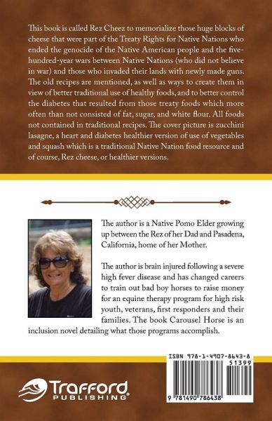 This book is called Rez Cheez to memorialize those huge blocks of cheese that were part of the Treaty Rights for Native Nations who ended the genocide of the Native American people and the five-hundred-year wars between Native Nations (who did not believe in war) and those who invaded their lands with newly made guns. The old recipes are mentioned, as well as ways to create them in view of better traditional use of healthy foods, and to better control the diabetes that resulted from those treaty foods which more often than not consisted of fat, sugar, and white flour. All foods not contained in traditional recipes. The cover picture is zucchini lasagne, a heart and diabetes healthier version of use of vegetables and squash which is a traditional Native Nation food resource and of course, Rez cheese, or healthier versions.