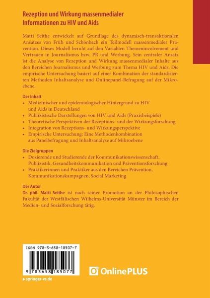 Matti Seithe entwickelt auf Grundlage des dynamisch-transaktionalen Ansatzes von Früh und Schönbach ein Teilmodell massenmedialer Prävention. Dieses Modell beruht auf den Variablen Themeninvolvement und Vertrauen in Journalismus bzw. PR und Werbung. Sein zentraler Ansatz ist die Analyse von Rezeption und Wirkung massenmedialer Inhalte aus den Bereichen Journalismus und Werbung zum Thema HIV und Aids. Die empirische Untersuchung basiert auf einer Kombination der standardisierten Methoden Inhaltsanalyse und Onlinepanel-Befragung auf der Mikroebene.