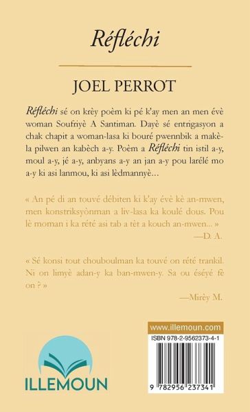 Réfléchi sé on krèy poèm ki k'ay men an men épi Soufriyè A Santiman. Dayè sé entrigasyon a chak chapit a woman-lasa ki bouré pwennbik a makè-la pilwen an kabèch a-y. Poèm a Réfléchi tin istil a-y, moul a-y, jé a-y, anbyans a-y an jan a-y pou larélé mo a-y ki asi lanmou, ki asi vérité a lavi, é ki asi lèdmannyè ban-nou...