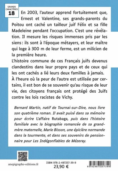 En 2003, l'auteur apprend fortuitement que, Ernest et Valentine, ses grands-parents du Poitou ont caché un tailleur juif Félix et sa fille Madeleine pendant l'occupation. C'est une révélation. Il mesure les risques immenses pris par les siens : ils sont à l'époque métayers, et leur maître qui loge à 300 m de leur ferme, est un milicien de la première heure. L'histoire commune de ces Français juifs devenus clandestins dans leur propre pays et de ceux qui les ont cachés a lié leurs deux familles à jamais. À l'heure où la peur de l'autre est utilisée par certains, il est bon de se souvenir qu'au risque de leur vie, des citoyens français ont protégé des Juifs contre les lois racistes de Vichy.