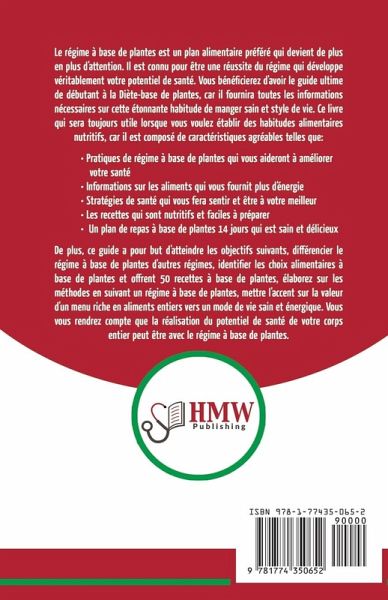 Le régime à base de plantes est un plan alimentaire préféré qui devient de plus en plus d'attention. Il est connu pour être une réussite du régime qui développe véritablement votre potentiel de santé. Vous bénéficierez d'avoir le guide ultime de débutant à la Diète-base de plantes, car il fournira toutes les informations nécessaires sur cette étonnante habitude de manger sain et style de vie. Ce livre qui sera toujours utile lorsque vous voulez établir des habitudes alimentaires nutritifs, car il est composé de caractéristiques agréables telles que: - Pratiques de régime à base de plantes qui vous aideront à améliorer votre santé - Informations sur les aliments qui vous fournit plus d'énergie - Stratégies de santé qui vous fera sentir et être à votre meilleur - Les recettes qui sont nutritifs et faciles à préparer - Un plan de repas à base de plantes 14 jours qui est sain et délicieux De plus, ce guide a pour but d'atteindre les objectifs suivants, différencier le régime à base de plantes d'autres régimes, identifier les choix alimentaires à base de plantes et offrent 50 recettes à base de plantes, élaborez sur les méthodes en suivant un régime à base de plantes, mettre l'accent sur la valeur d'un menu riche en aliments entiers vers un mode de vie sain et énergique. Vous vous rendrez compte que la réalisation du potentiel de santé de votre corps entier peut être avec le régime à base de plantes.
