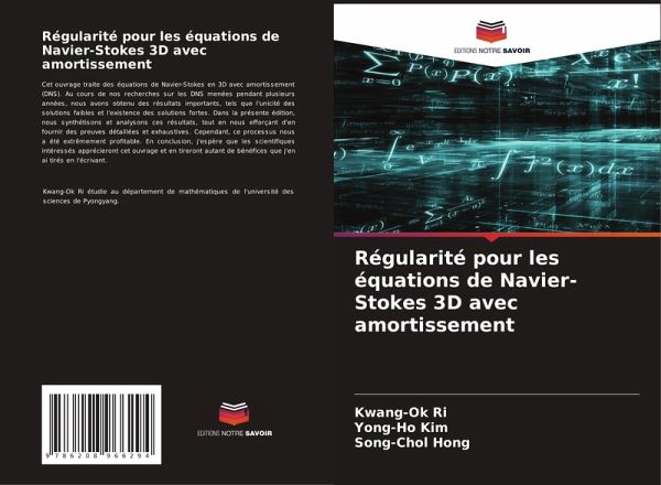 Cet ouvrage traite des équations de Navier-Stokes en 3D avec amortissement (DNS). Au cours de nos recherches sur les DNS menées pendant plusieurs années, nous avons obtenu des résultats importants, tels que l'unicité des solutions faibles et l'existence des solutions fortes. Dans la présente édition, nous synthétisons et analysons ces résultats, tout en nous efforçant d'en fournir des preuves détaillées et exhaustives. Cependant, ce processus nous a été extrêmement profitable. En conclusion, j'espère que les scientifiques intéressés apprécieront cet ouvrage et en tireront autant de bénéfices que j'en ai tirés en l'écrivant.