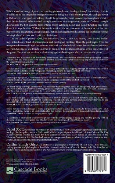 This is a work of doing, of poesis, an enacting philosophy and theology through immediacy. It seeks to call to mind our original interrogative stance in Being, as did the Eleatic poem, the dialogic power of Plato, even Heidegger's indwelling. Should the philosopher want to recover philosophical wonder, then this is the road to be traveled; thought needs raw unmanageable experience. Ordered thought dies without the first eventful taste of time briefly eclipsing Being, and Being thrusting time back down into supplication. Without this confrontation, the very measure of humans as the horizon between time and eternity, closer to angels, but neither angel nor fully animal, our thinking becomes ideological and self-enclosed patterns of attrition. The ten cycles of poetry--God, Sex, Surrender, Death, Time, Art, Prayer, Love, Rosary, Suffering--intend a new kind of philosophical and theological thinking. Here, the poet begins from the unrepeatable courtship with the intimate new, with the blushed and chaste forever-firsts of existence as Truth, Goodness, and Beauty in actus. In this new kind of philosophizing, love is the architect of the game. The poet has no chance of winning against the designer who can remove the pieces.