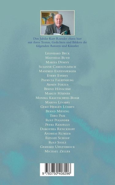 In unserer heutigen, eng spezialisierten Arbeitswelt bildet Kurt Roessler eine recht rare Ausnahmeerscheinung. Einerseits absolvierte er eine steile wissenschaftliche Karriere. Er promovierte 1968 im Fach Nuklearchemie an der Universitaet zu Köln, leitete von 1973 bis 2003 die Abteilung Hochenergiechemie des Forschungszentrums Juelich. Seit 1983 legte er Arbeiten zur Chemie im Weltraum und in Kometen vor. Bereits 1985 übernahm er einen Lehrauftrag an der Universitaet Muenster und wirkte seit 1993 dort als Honorarprofessor für Kosmochemie. Das sollte eigentlich für ein normales und erfülltes Wissenschaftler- und Forscherleben reichen. Allein: Kurt Roessler hat es zusätzlich auf sich genommen, seit 1995 die inhaltliche und praktische Gestaltung der alljaehrlichen Bad Honnefer Winterseminare zur kosmischen Evolution im Physikzentrum Bad Honnef zu organisieren. Wer daran teilnehmen durfte, wird diesen ungeheuer anregenden und informativen interdisziplinaeren Diskurs nie vergessen. Kurt Roessler veroeffentlichte mehr als 400 Publikationen und Buecher zu naturwissenschaftlichen Themen und Fragen der Erforschung der Literatur, ganz besonders im Rahmen seines Interessen-Schwerpunkts der lyrischen Landschaft entlang des Rheins. Dass ein international anerkannter und gefragter Wissenschaftler, Referent, Gastdozent und Autor sich die Zeit nimmt, anderen Kuenstlern ein Forum zu bieten, ihre Texte zu veröffentlichen, ihre Werke zu praesentieren und ihre Musik aufzufuehren, duerfte ziemlich einmalig sein.