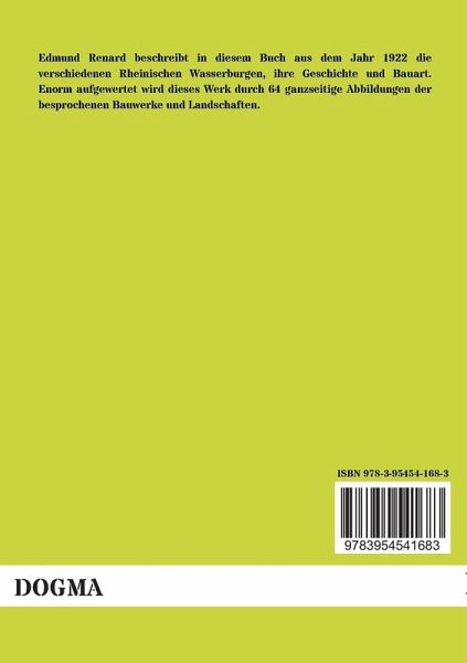 Edmund Renard beschreibt in diesem Buch aus dem Jahr 1922 die verschiedenen Rheinischen Wasserburgen, ihre Geschichte und Bauart. Enorm aufgewertet wird dieses Werk durch 64 ganzseitige Abbildungen der besprochenen Bauwerke und Landschaften.