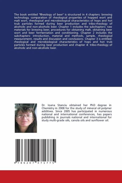 The book entitled "Rheology of beer" is structured in 4 chapters: brewing technology, comparation of rheological properties of hopped wort and malt wort, rheological and microbiological characteristics of hops and hot trub particles formed during beer production and tribo-rheology of alcoholic and non-alcoholic beer. Chapter 1 includes the subchapters: raw materials for brewing beer, procedures for obtaining malt, obtaining beer wort and beer fermentation and conditioning. Chapter 2 includes the subchapters: introduction, material and methods, sample, rheological measurement, results and discussion and conclusions. Chapter 3 is entitled: rheological and microbiological characteristics of hops and hot trub particles formed during beer production and chapter 4: tribo-rheology of alcoholic and non-alcoholic beer.