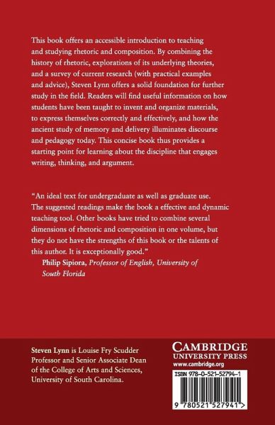 Rhetoric and composition is an academic discipline that informs all other fields in teaching students how to communicate their ideas and construct their arguments. It has grown dramatically to become a cornerstone of many undergraduate courses and curricula, and it is a particularly dynamic field for scholarly research. This book offers an accessible introduction to teaching and studying rhetoric and composition. By combining the history of rhetoric, explorations of its underlying theories, and a survey of current research (with practical examples and advice), Steven Lynn offers a solid foundation for further study in the field. Readers will find useful information on how students have been taught to invent and organize materials, to express themselves correctly and effectively, and how the ancient study of memory and delivery illuminates discourse and pedagogy today. This concise book thus provides a starting point for learning about the discipline that engages writing, thinking, and argument.