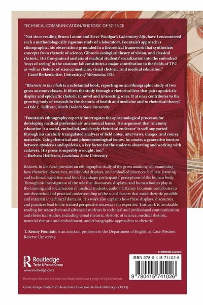 Rhetoric in the Flesh is the first book-length ethnographic study of the gross anatomy lab to explain how rhetorical discourses, multimodal displays, and embodied practices facilitate learning and technical expertise and how they shape participants' perceptions of the human body. By investigating the role that discourses, displays, and human bodies play in the training and socialization of medical students, T. Kenny Fountain contributes to our theoretical and practical understanding of the social factors that make rhetoric possible and material in technical domains. Thus, the book also explains how these displays, discourses, and practices lead to the trained perspective necessary for expertise. This trained vision is constructed over time through what Fountain terms embodied rhetorical action, an intertwining of body-object-environment that undergirds all scientific, medical, and technical work. This book will be valuable for graduate and advanced undergraduate courses in technical and professional communication (technical communication theory and practice, visual or multimodal communication, medical technical communication) and rhetorical studies, including visual rhetoric, rhetoric of science, medical rhetoric, material rhetoric and embodiment, and ethnographic approaches to rhetoric.